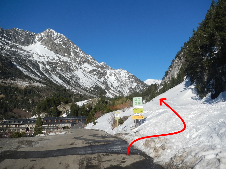Desde el parking seguimos la carretera que va hacia el hotel.