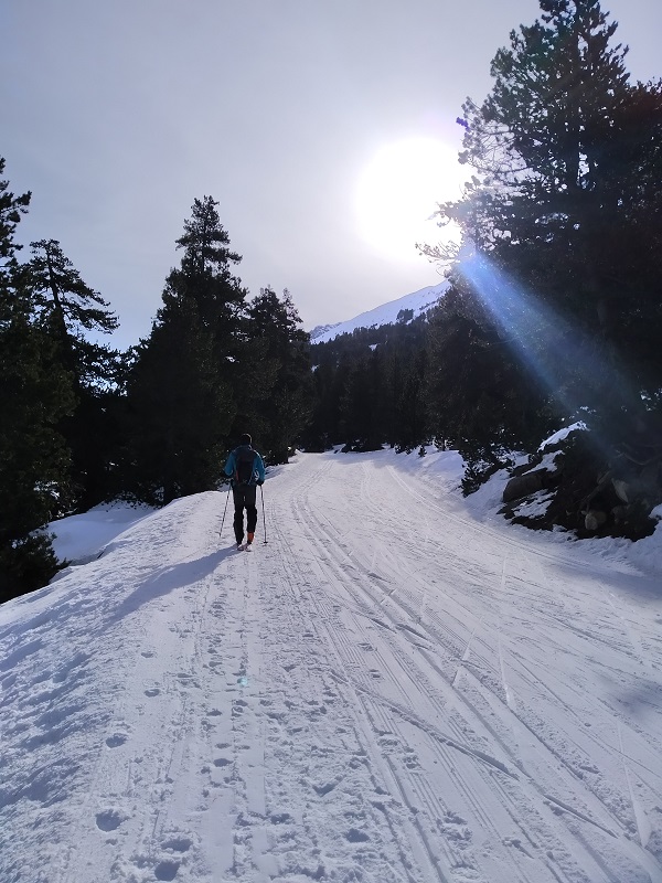 En unos 10 minutos llegamos al desvío que nos lleva a la Besurta, donde empieza la pista de esquí de fondo. Aquí podemos calzarnos los esquís.