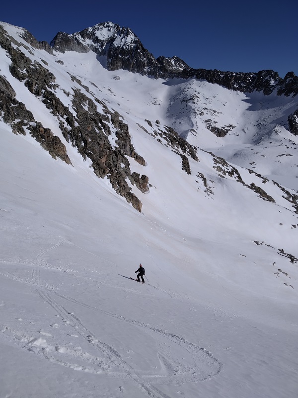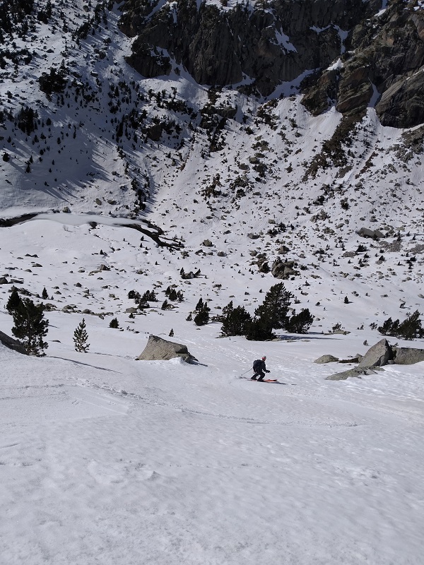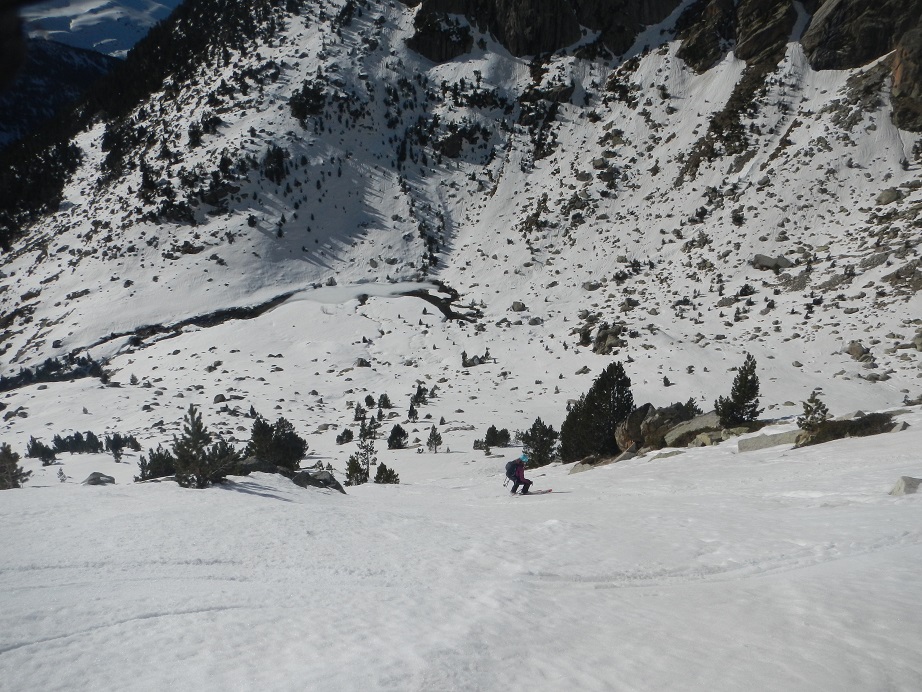 Comenzamos el descenso con nieve primavera, bajo el gran Aneto.