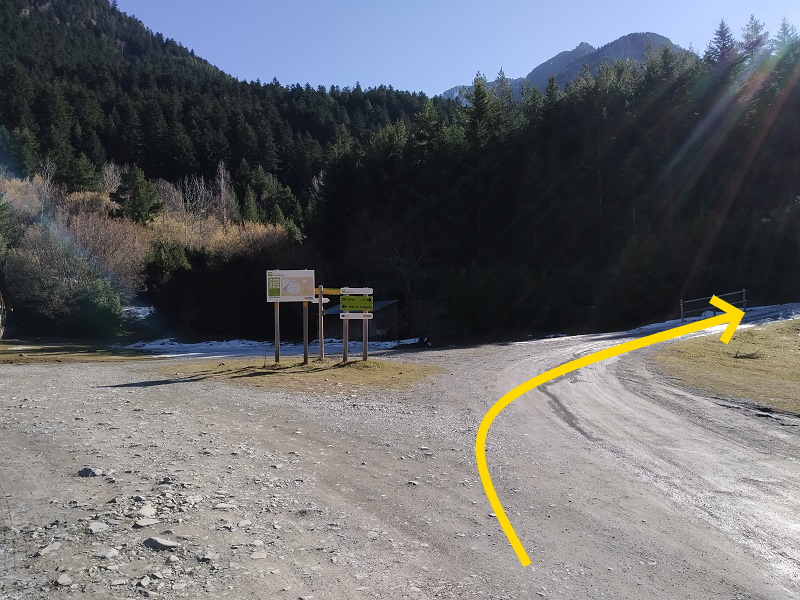 Dejaremos a nuestra derecha el embalse de Paso Nuevo y cuando crucemos un salva aludes, tomaremos una carretera descendente a la derecha que nos lleva a Pla de Senarta. Un cartel indica valle de Vallibierna.