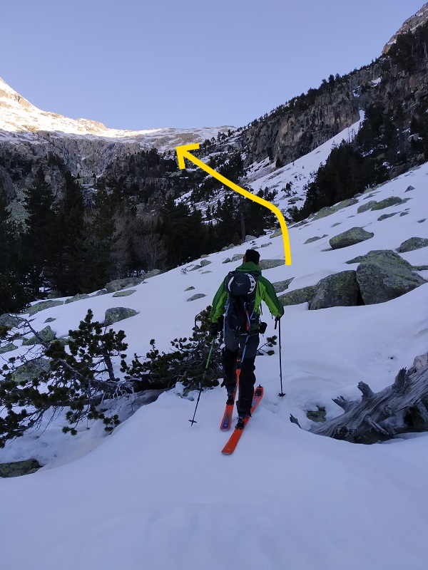 Para llegar al collado, donde nos calzaremos los esquís.