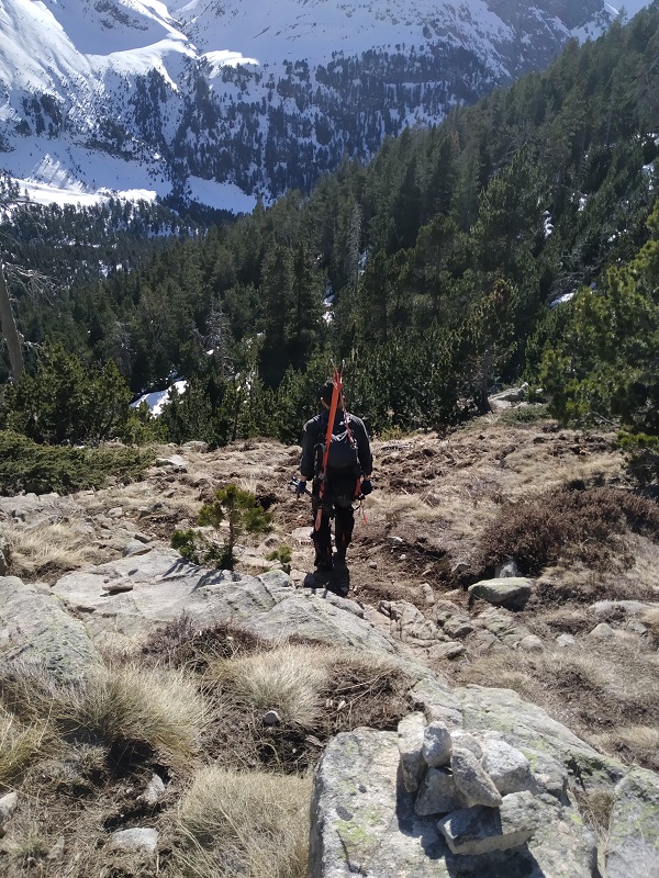Hasta tener que descalzar finalmente por falta de nieve en este tramo.