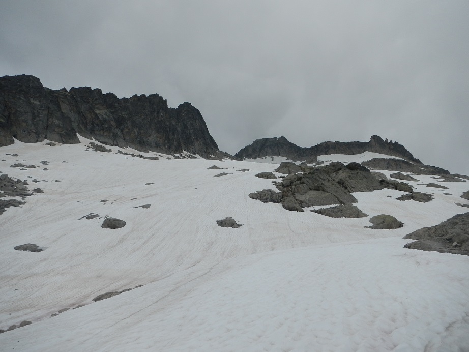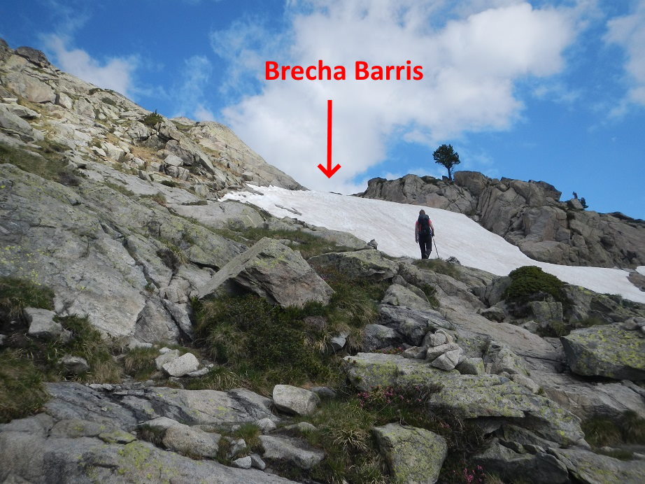Antes de llegar a la brecha, podremos encontrarnos un nevero hasta bien entrada la temporada. Nosotros lo podemos evitar por la izquierda.
