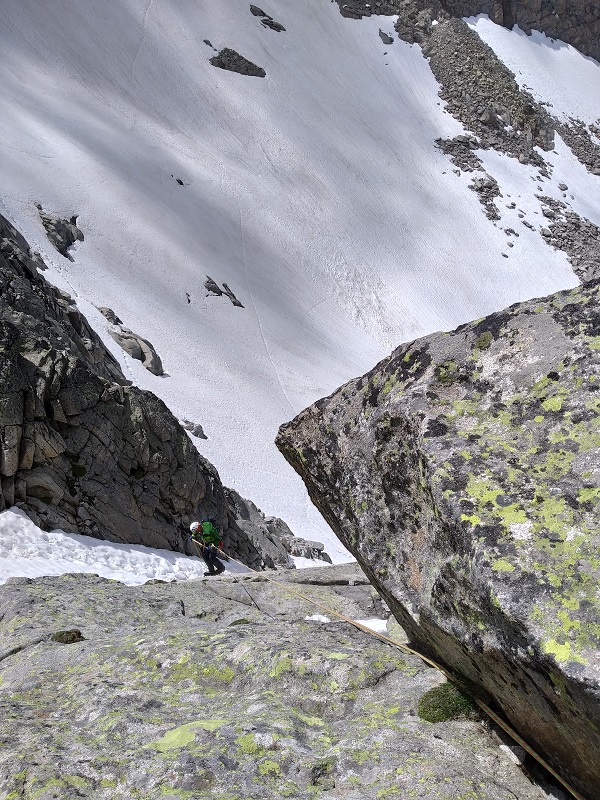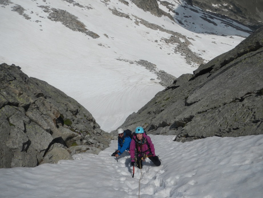 - Un corredor de unos 40º con nieve, como fue nuestro caso. También, según reseñas, se puede acceder por el sin nieve, IIº.