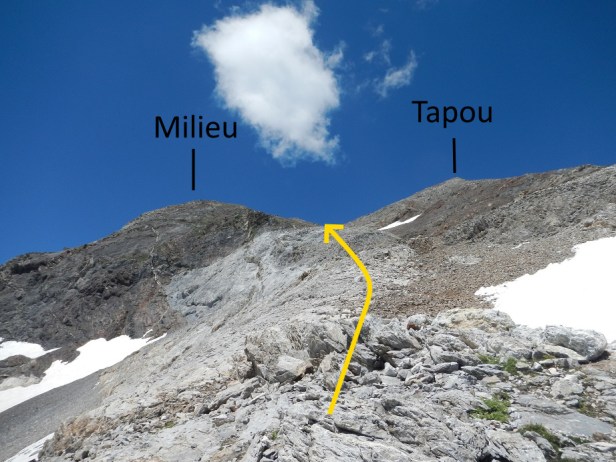 Desde el collado, ascenderemos primero al pico MILIEU, fácil.