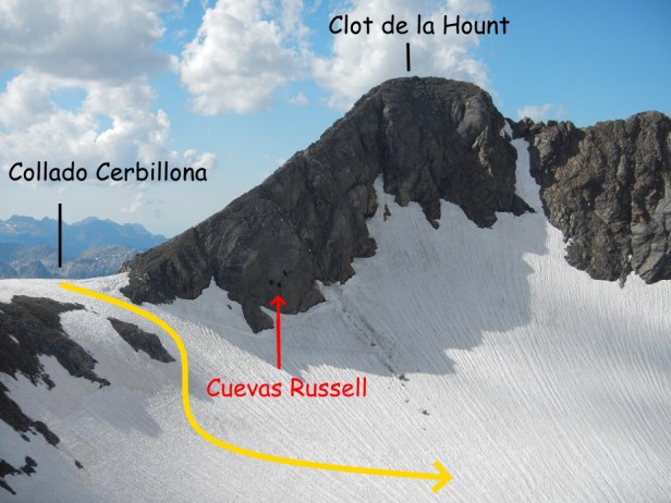 Desde la cumbre del Cerbillona, nos dirigiremos al collado de la Cerbillona y tomaremos el glaciar.