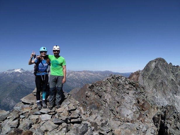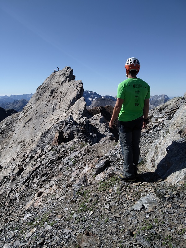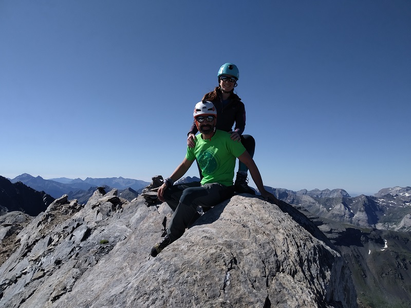 En la cumbre encontramos una cordada que había escalado la arista norte, Pep y Albert, que nos invitan a rapelar con ellos por la que era la ruta normal desde la Hourquette du Pic Long. ¡Gracias!