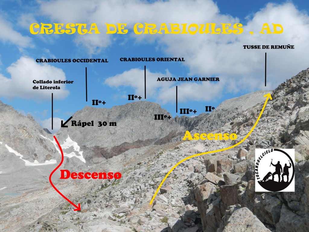 - Cresta de Crabioules, AD, en el centro. Os la describimos en esta entrada.