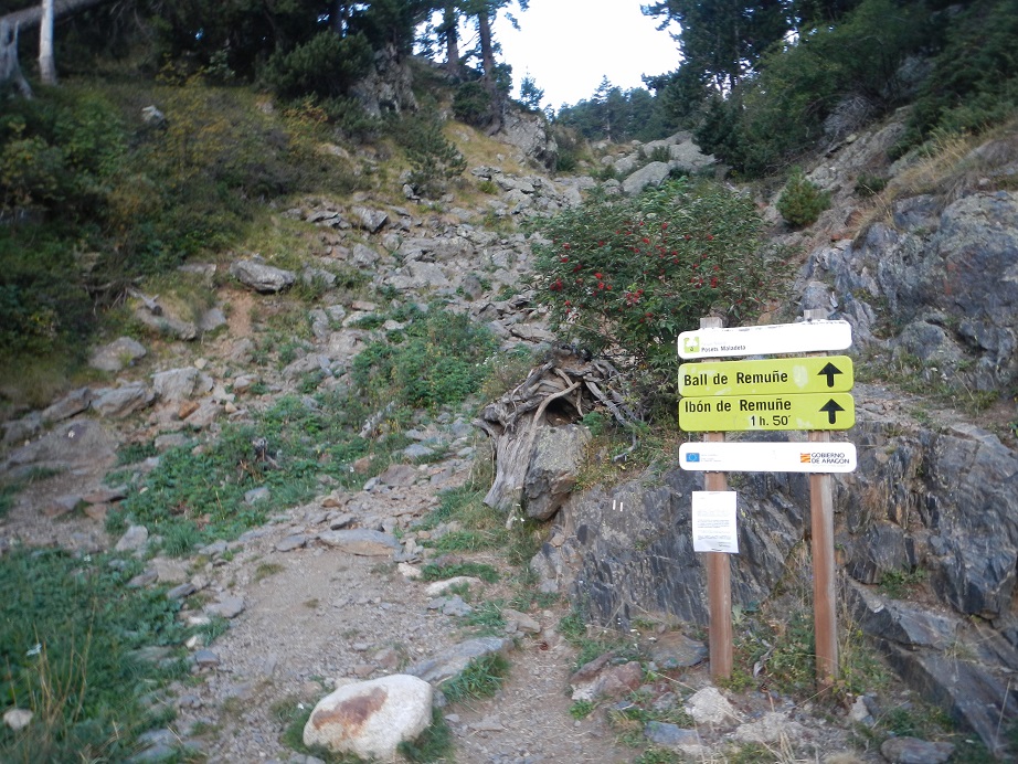 A nuestra izquierda en el sentido de la marcha encontraremos un cartel que da entrada al valle, indicado como Ball de Remuñe.