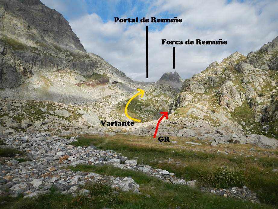 Llegados a este punto ya podemos ver los picos de los Crabioules. Dejamos la bonita Forca de Remuñe a nuestra derecha y seguimos ascendiendo.