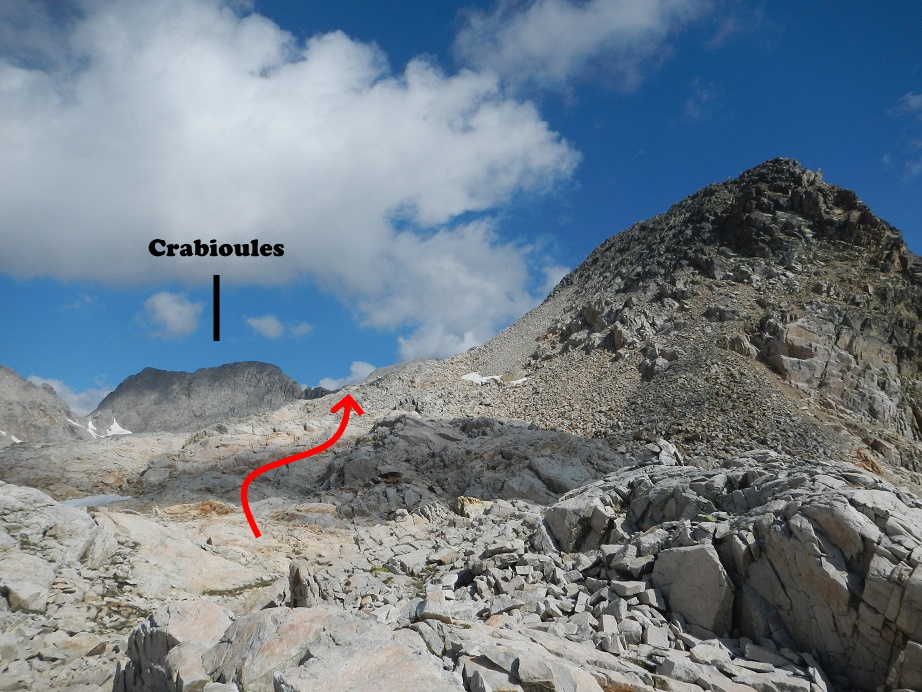 Desde el Crabioules Occidental, continuamos la cresta en la misma dirección en busca de la brecha Mamy.
