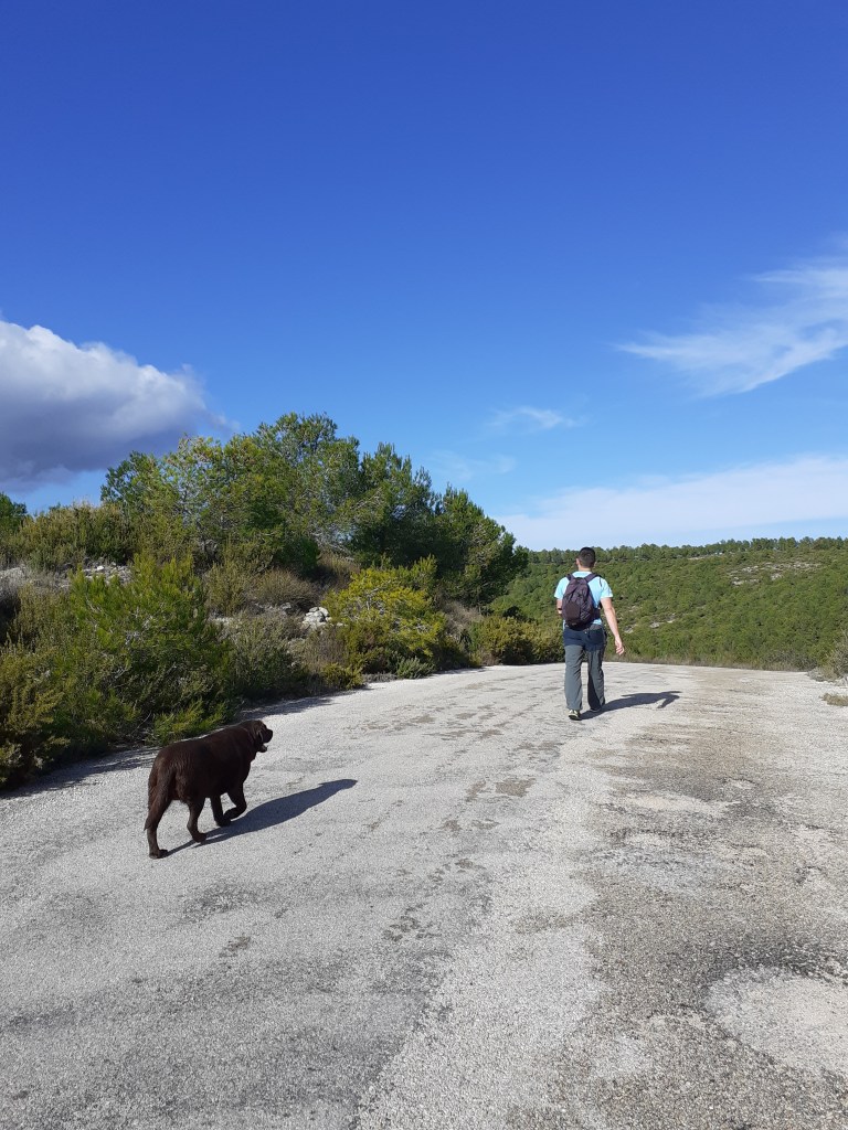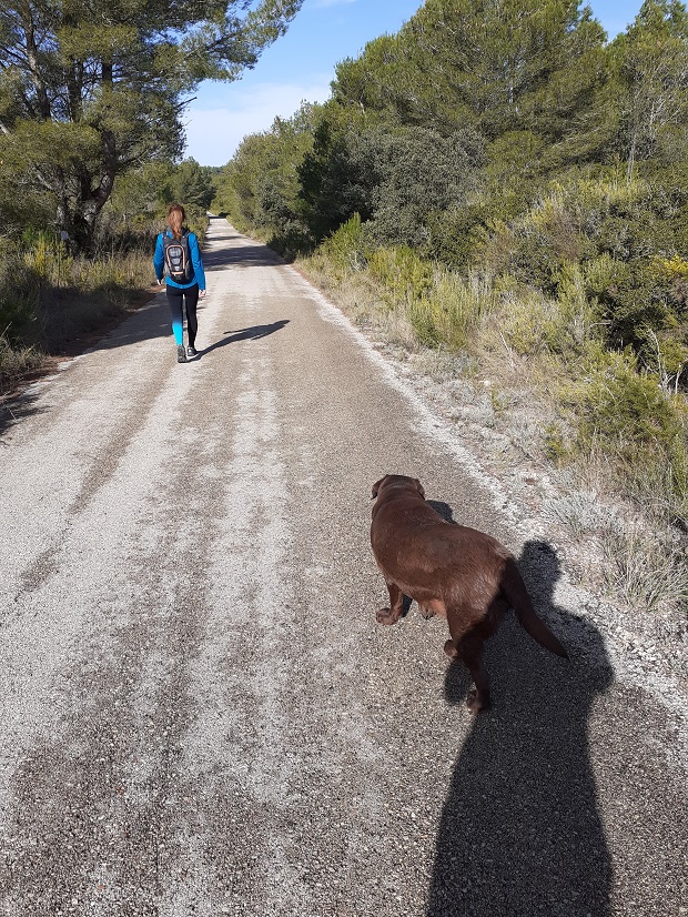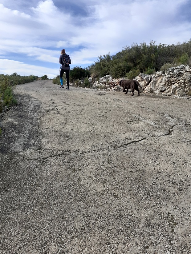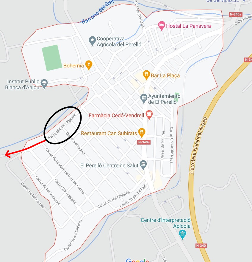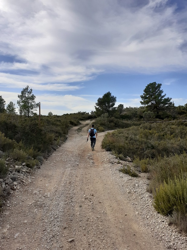 Tomamos la avenida dels Xiprers hacia el oeste hasta su final y seguimos una pista asfaltada.