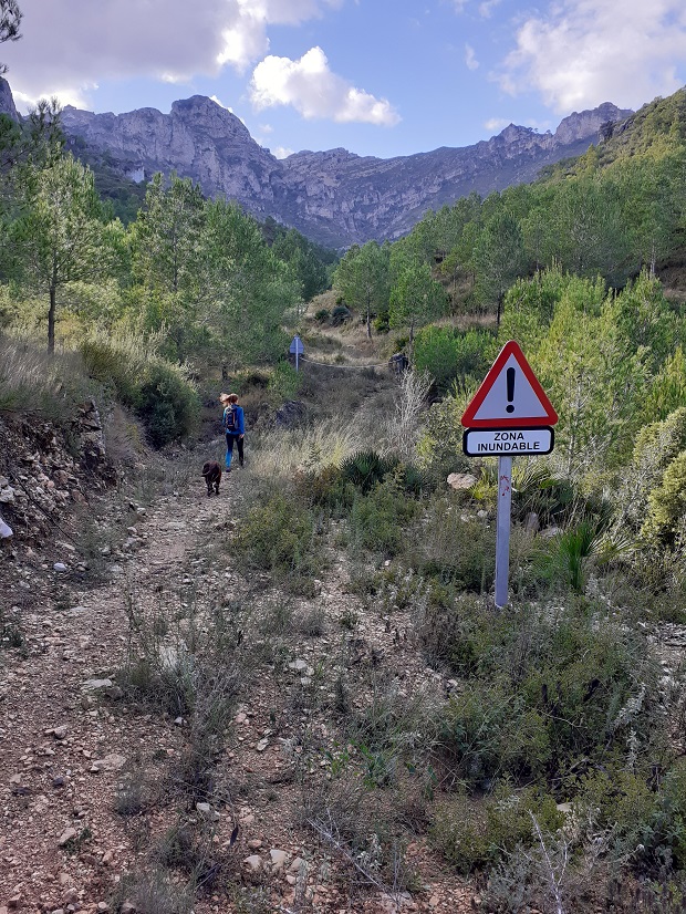 Cruzamos otro barranco, hay una señal de zona inundable.