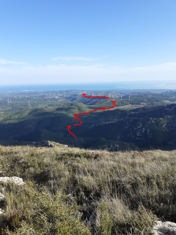 Lo realizamos por el mismo camino. Desde la cumbre podemos ver practicamente todo el recorrido.