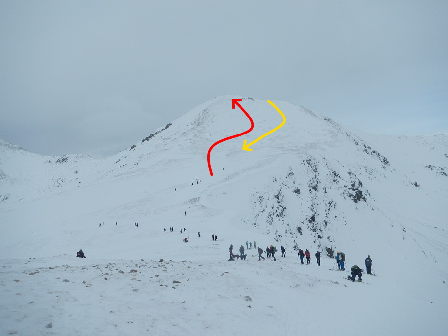 En lugar de ir directamente al collado, vamos a la izquierda, donde hay menos inclinación.
