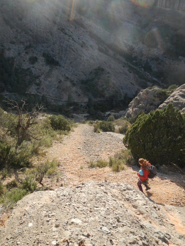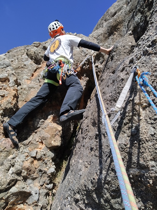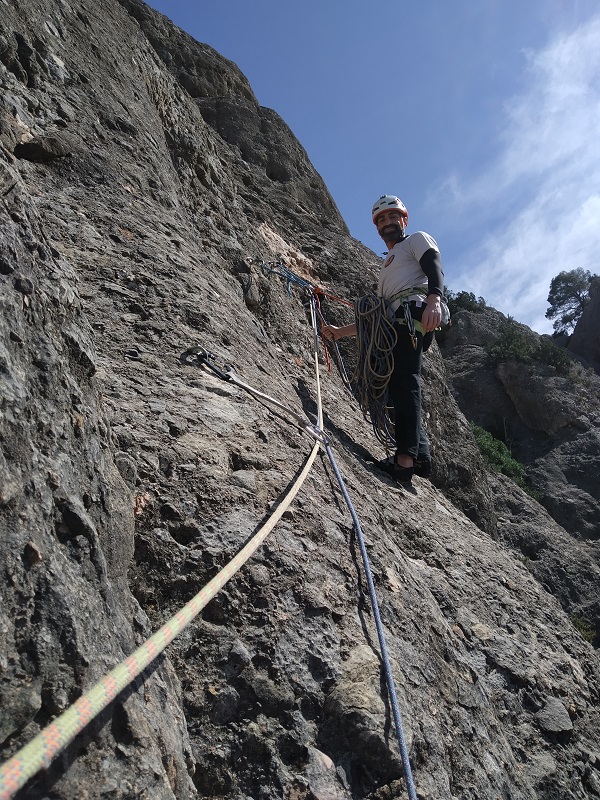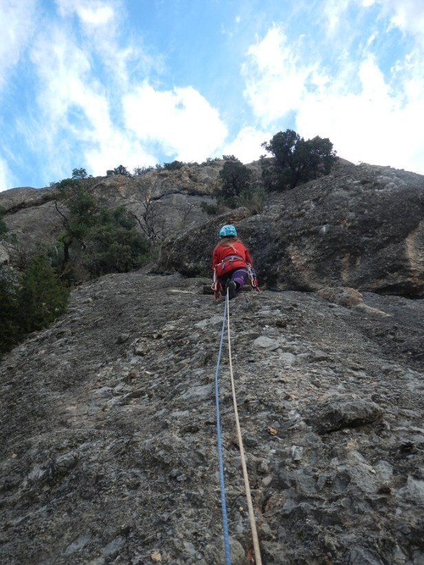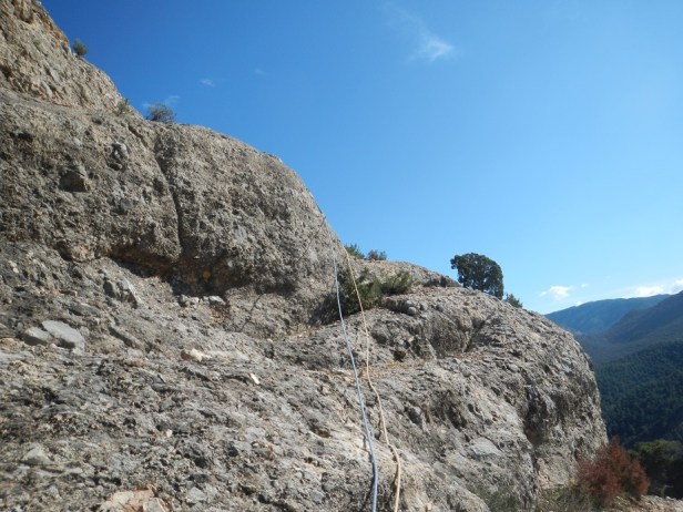 Primero rapelamos desde la sabina hacia la vertiente contraria a donde hemos escalado, 30 metros.