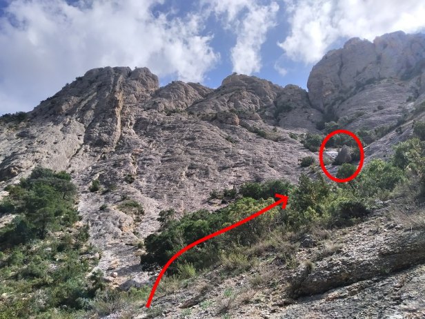 Vía que discurre por la cara oeste de la Gronsa Sud, dentro del Parque Natural dels Ports y en el entorno dels Estrets d’Arnes.
