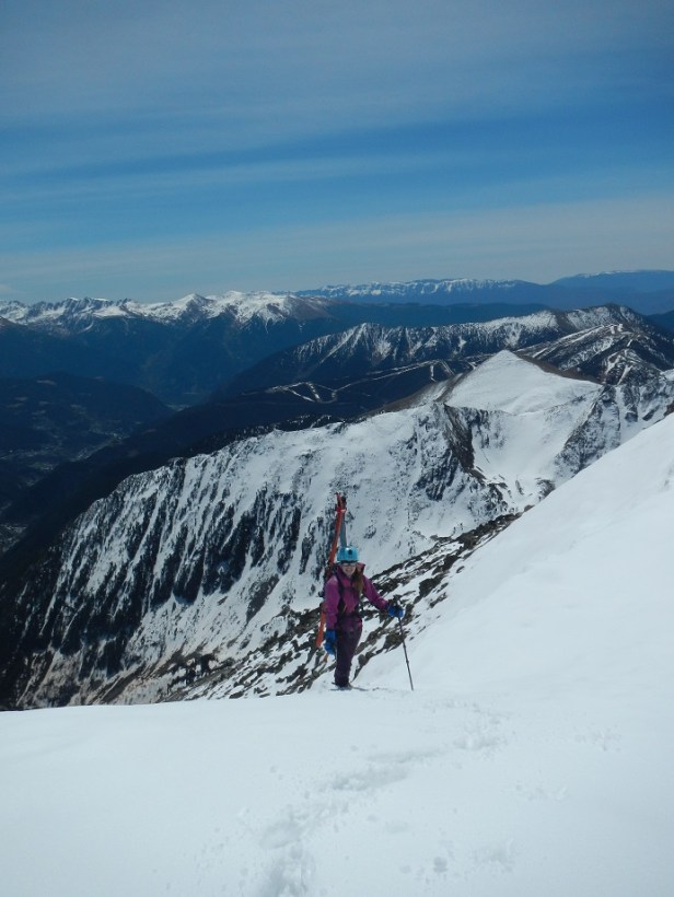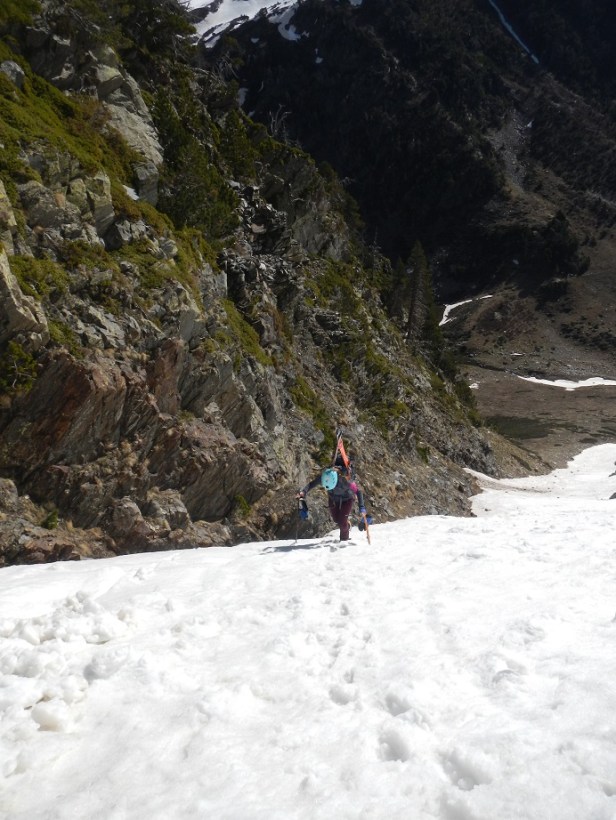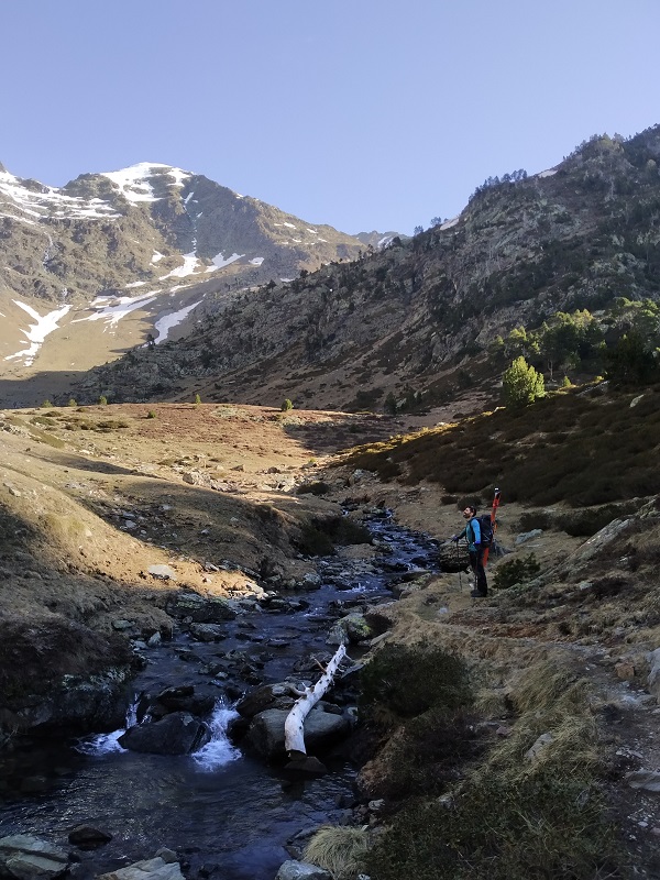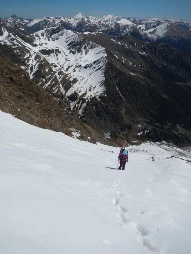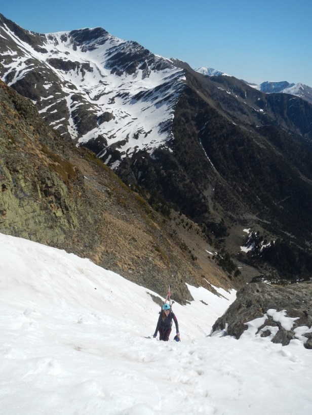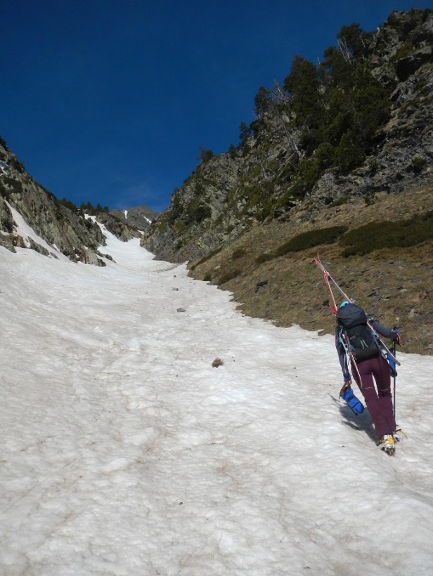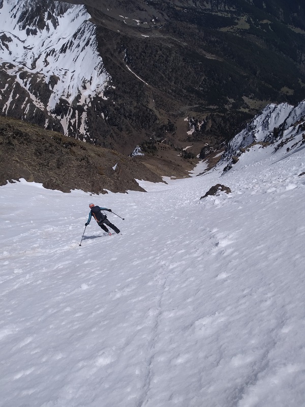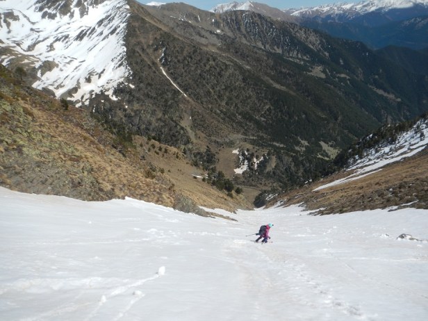 Ascendemos por el Pla de l’Estany, a través de la larguísima canal de l’Alt y descendemos con esquís por la misma canal.