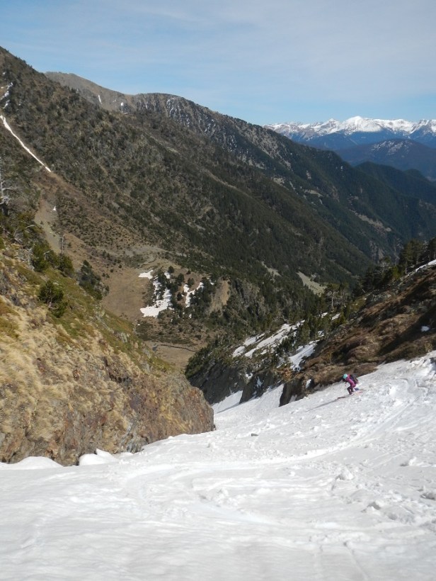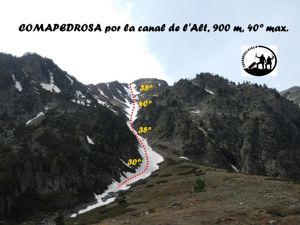 Y ya podemos ver la canal de l’Alt (900 metros, 40º max).