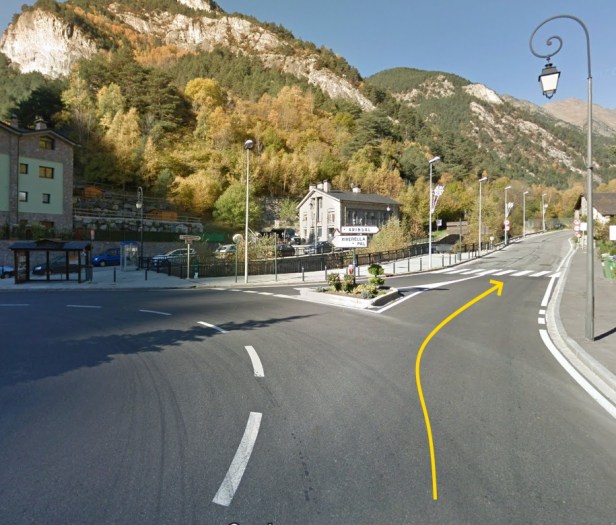 Cruzamos el pueblo de Arinsal y cuando atravesamos el primer túnel giramos a la derecha.