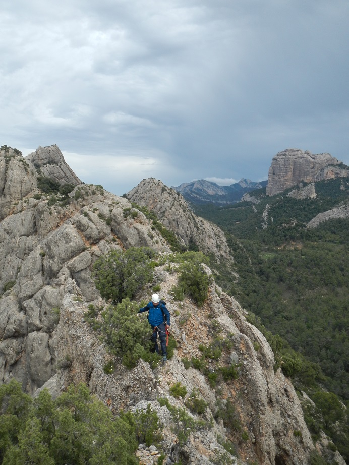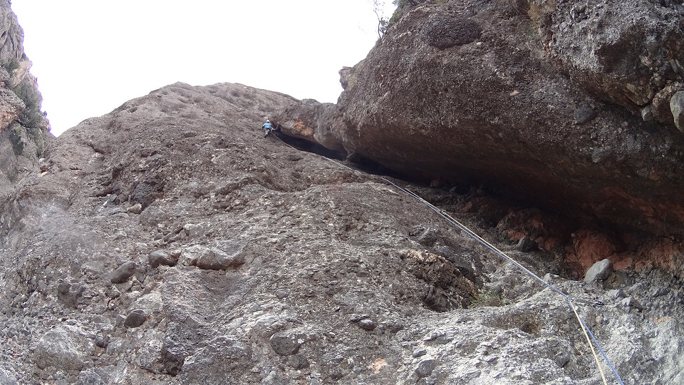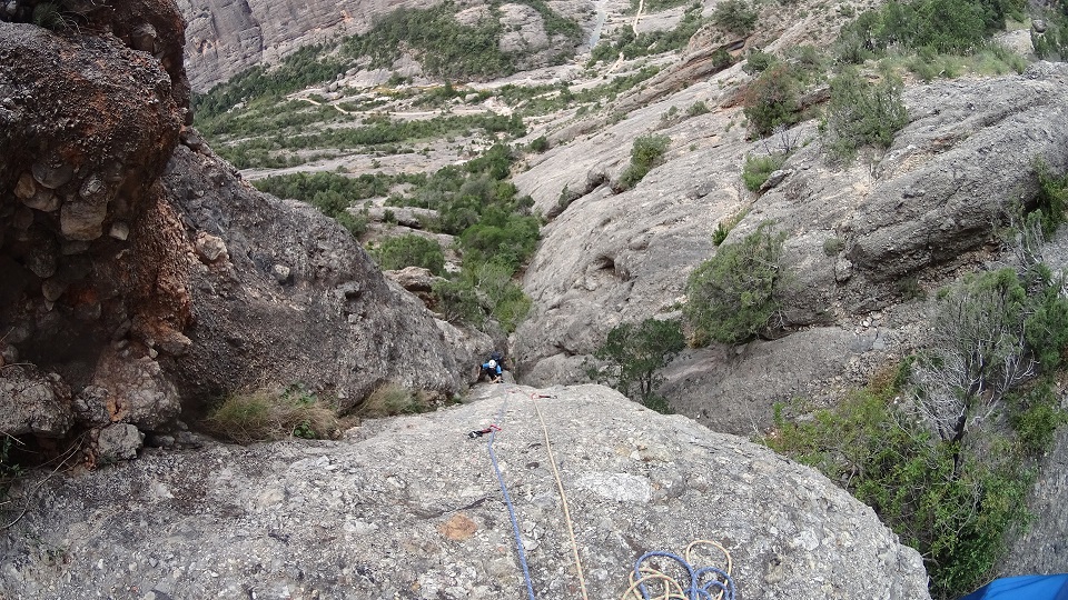 Llegamos a una pequeña terraza y entramos en un tramo más vertical, pero bien protegido con parabolts.