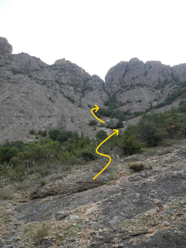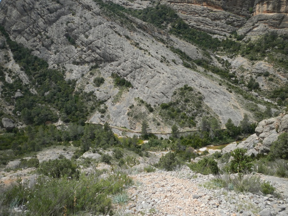 Llegamos a una canal descompuesta con el camino dels Estrets que hemos seguido por la mañana ya a la vista.
