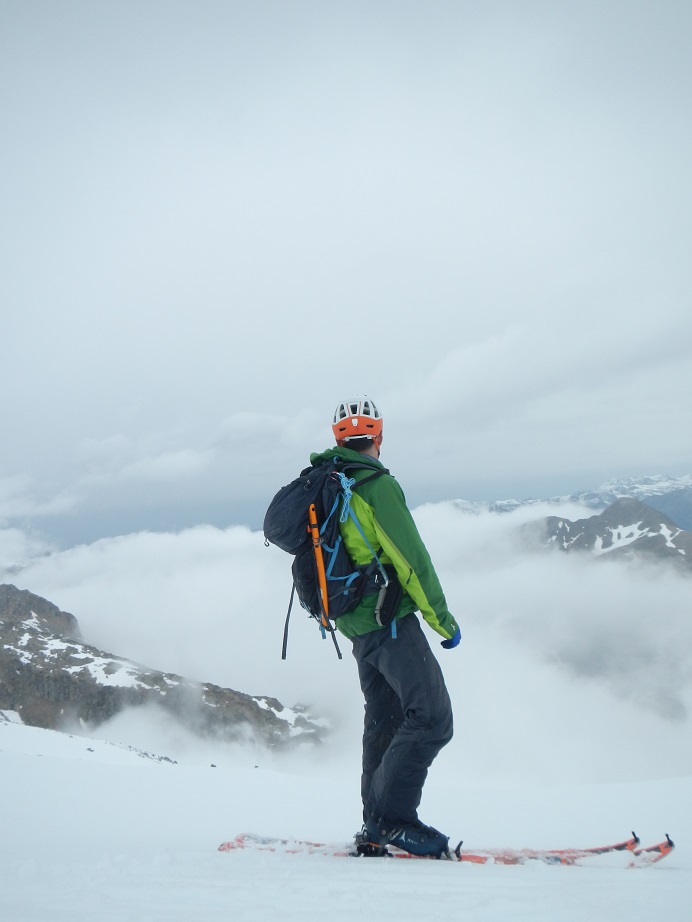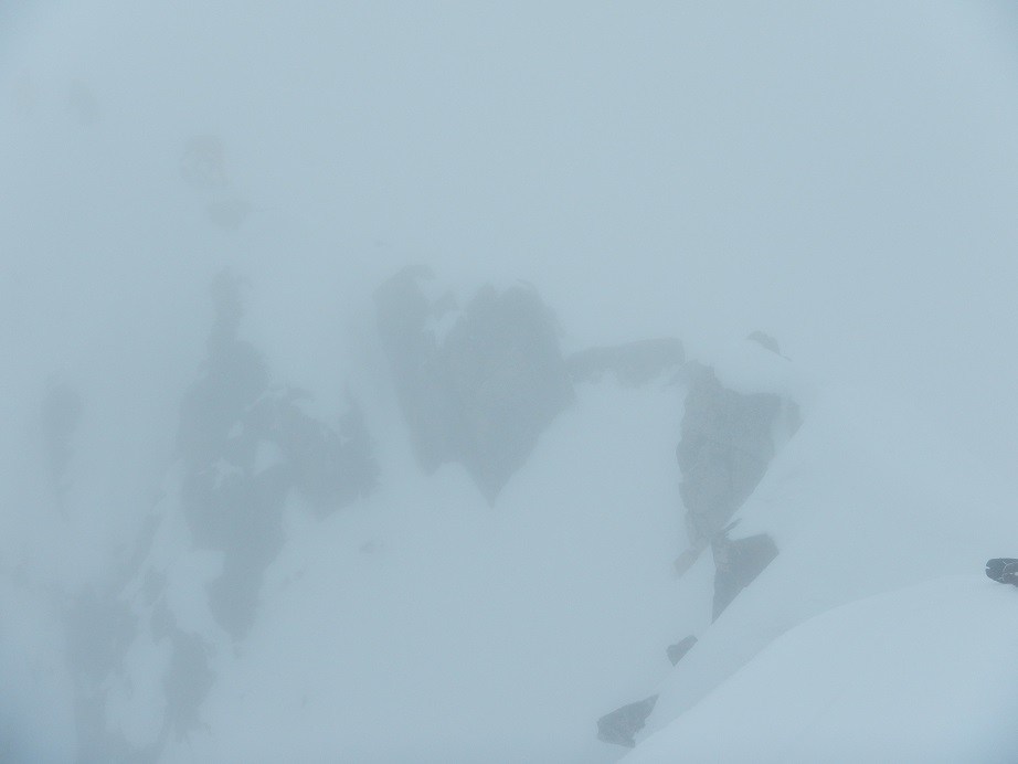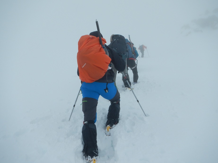 La meteo por desgracia no acompañó del todo y encontramos mala visibilidad en altura. Pudimos llegar a la cumbre pero no disfrutamos completamente el descenso de casi 1.300 m de desnivel que realizamos desde la misma antecima.