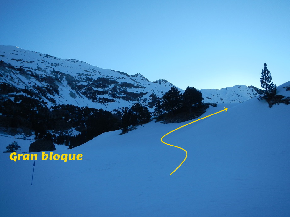 Tomamos como referencia un gran bloque para abandonar de las pistas de esquí de fondo.