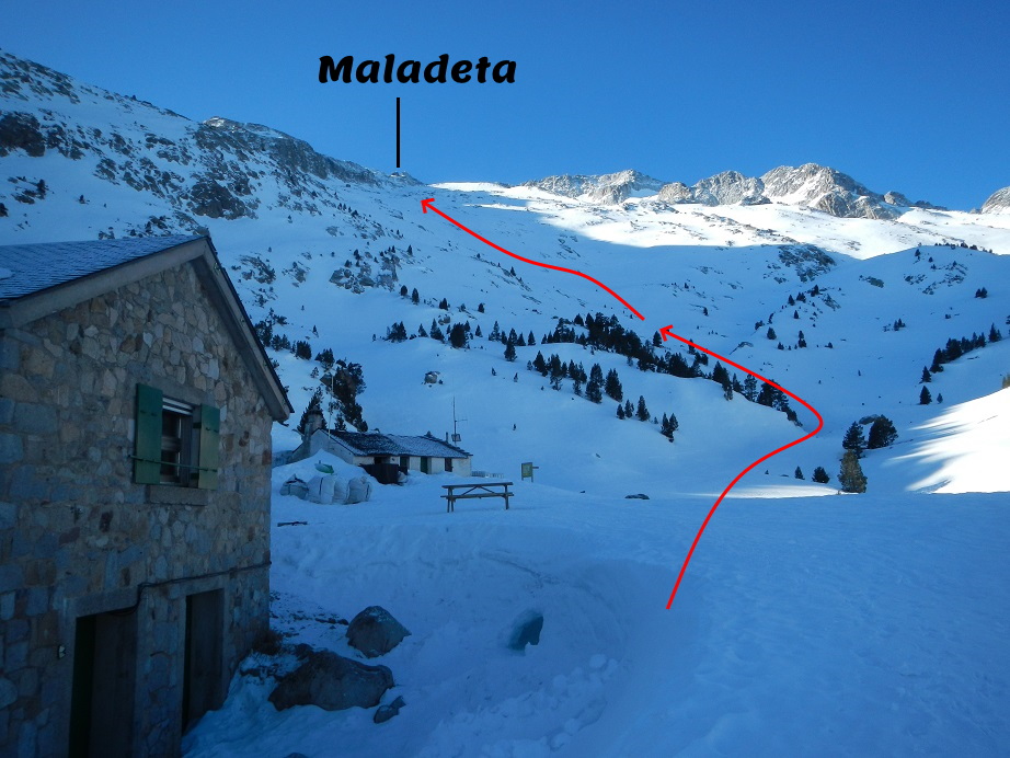 En invierno la ascensión comienza en el parking del vado de los Llanos del Hospital, ya que la carretera que nos lleva a la Besurta se convierte en una pista de esquí de fondo. Después de llegar al refugio de la Renclusa, todavía tendremos que ascender 1.000 metros de desnivel hasta la base de un corredor de unos 80 metros y 45º-50º que sin ser difícil, al ser oblicuo, tiene mala caída, por lo que deberemos tener precaución. Entonces solo tendremos que caminar 5 minutos para llegar a la cumbre de esta espectacular montaña.