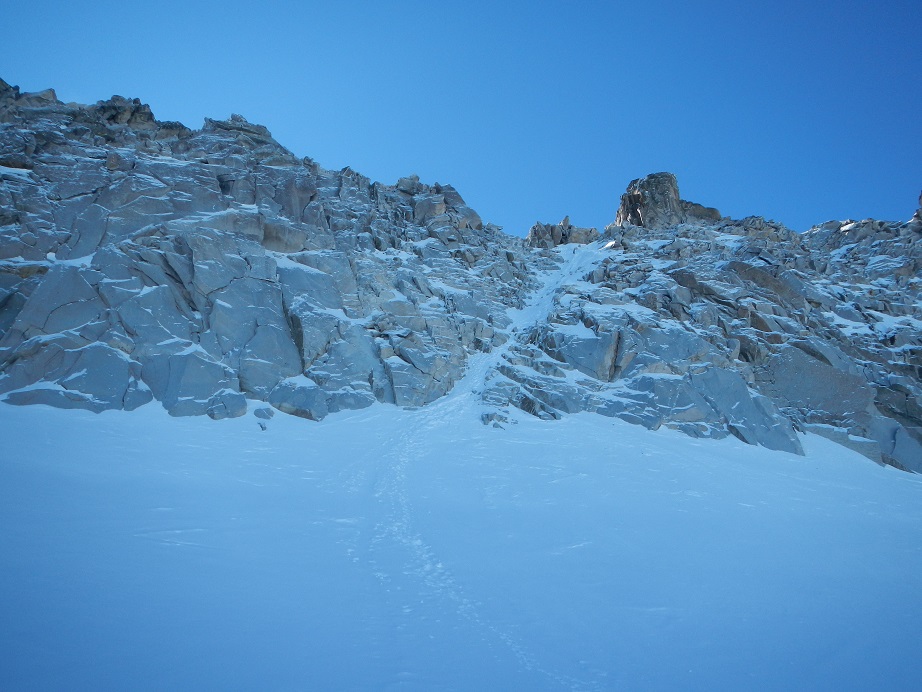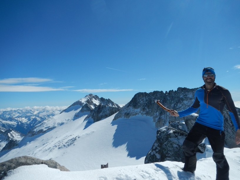 Se trata de una de esas cumbres raras, cuya ascensión en invierno suele resultar más fácil que en verano, cuando el calor hace que se retire la nieve, aparezca el hielo y se abra la rimaya glaciar.