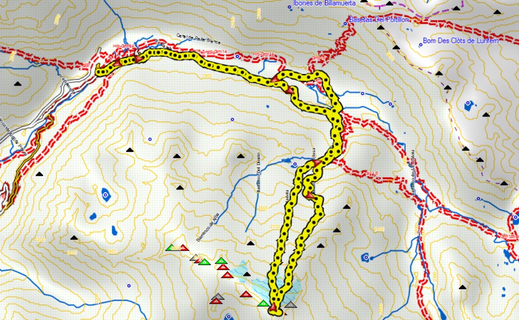 Seguimos la ruta normal que nos lleva al Aneto hasta el desvío del Portillón Superior. Es una ruta muy concurrida por lo que es fácil encontrar huella abierta.