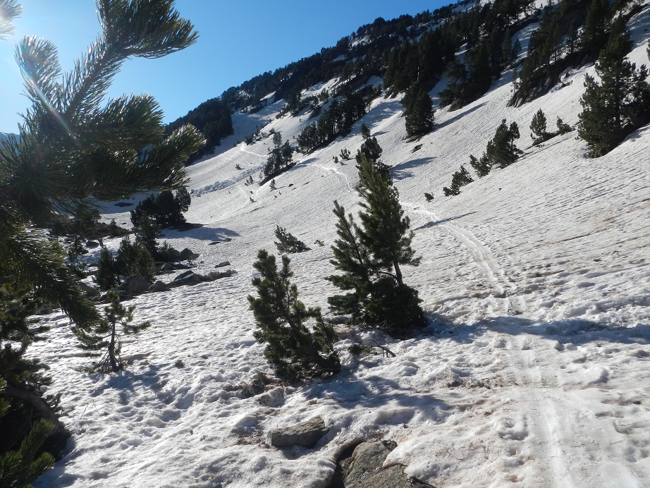 Ya en esta otra vertiente encontramos las huellas de los grupos que ascienden desde el refugio de la Renclusa.