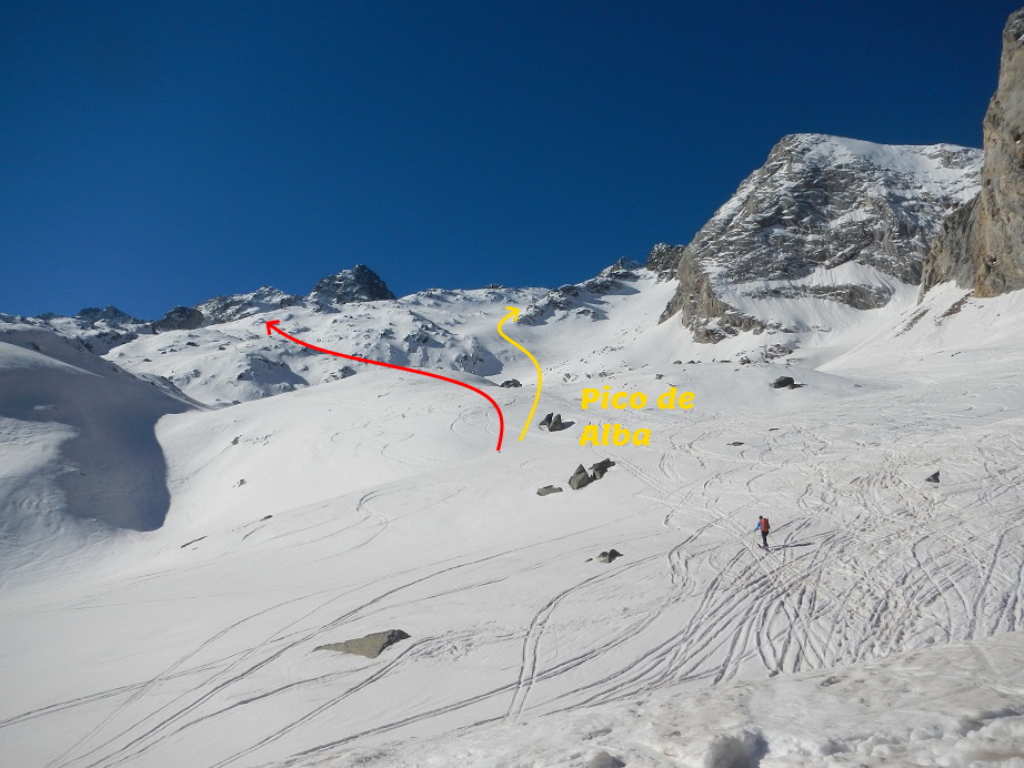 La nieve del corredor del collado de Alba ha transformado y permite el descenso con esquís.