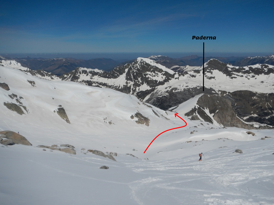 Después del corredor descendemos a placer, con tendencia a la izquierda, tomando como referencia el pico de Paderna.