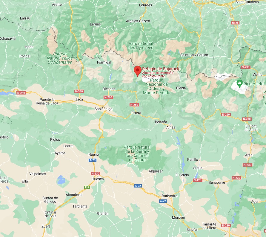- PUNTO DE INICIO: Refugio de Bujaruelo. Enlace de Google Maps.