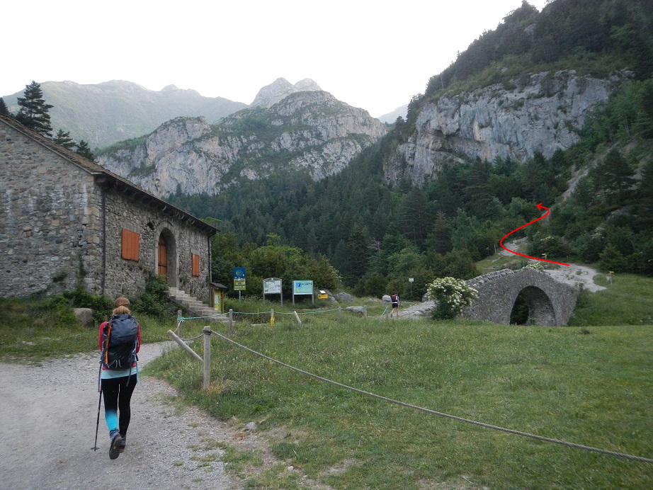Seguimos una pista a tramos asfaltada hasta el refugio de Bujaruelo, donde podemos estacionar el vehículo.