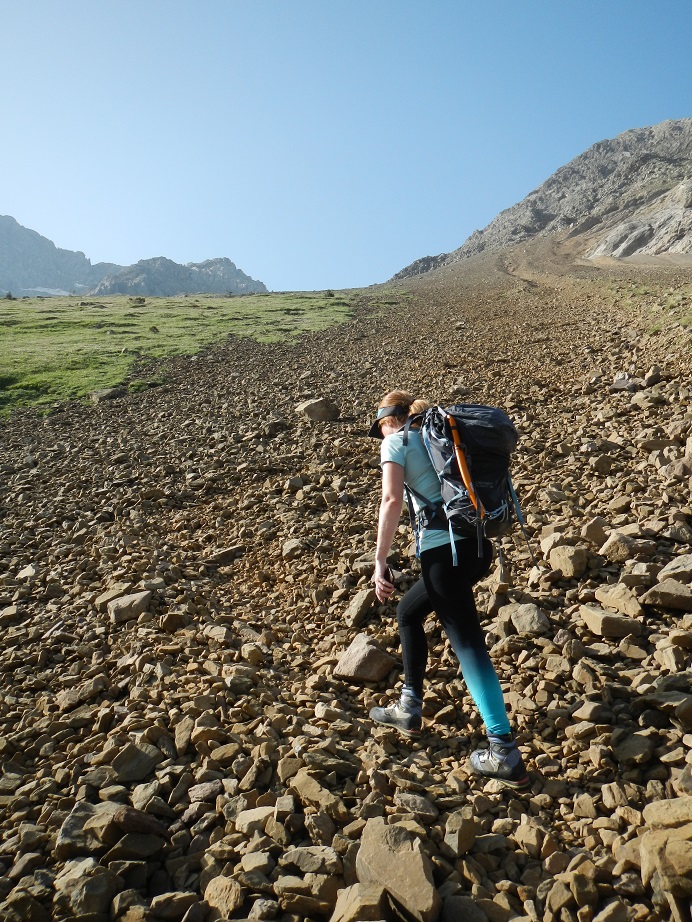 El último tramo es el más descompuesto. Por fin llegamos al collado. Después volveremos a pasar por aquí, en el descenso desde el collado de Gabieto.