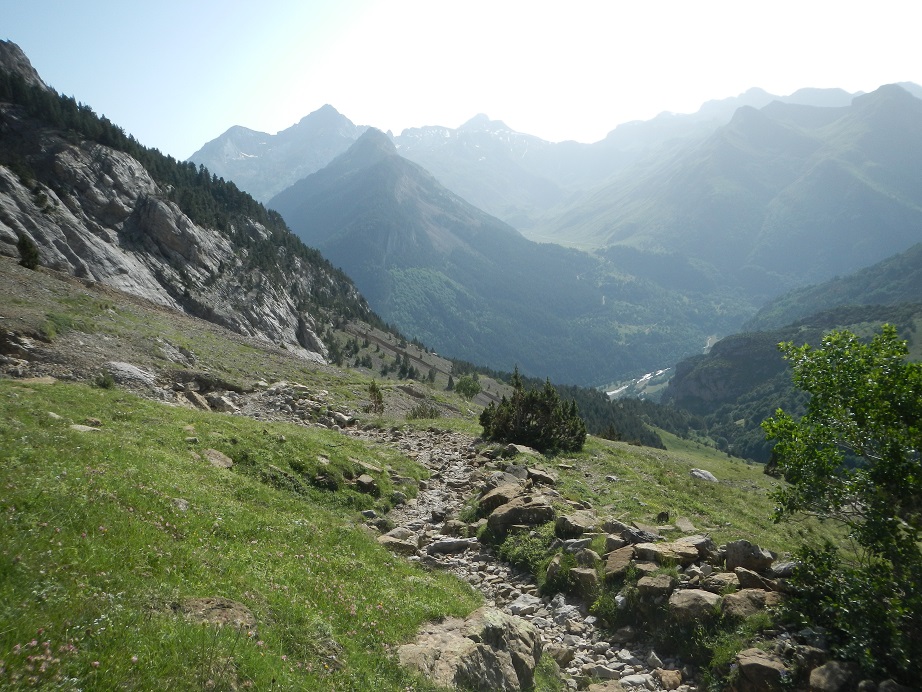 Cuando superamos la pedrera llegamos a una zona herbosa. En este punto cruzamos el camino que por la izquierda viene del Puerto de Bujaruelo.