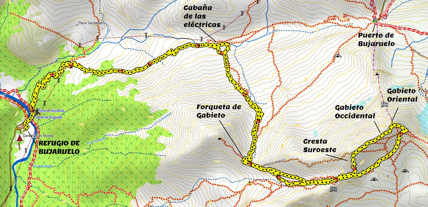Después seguimos un tramos de sendero, dejamos a la izquierda la Arista Oeste, que nos llevaría también a los Gabietos, AD.
