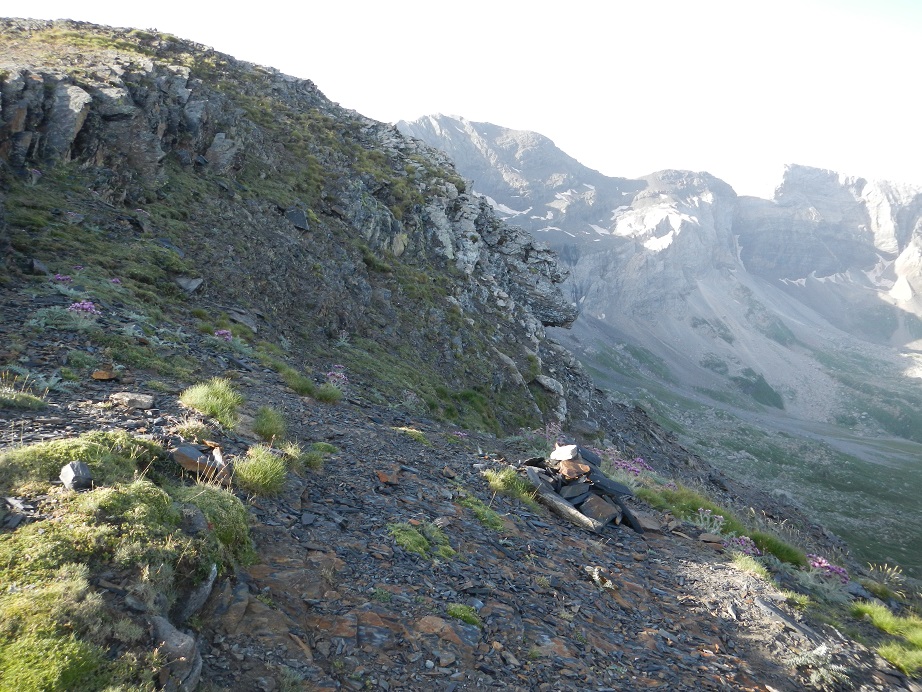 Antes de llegar al pico, un hito nos marca el desvío a la derecha para entrar en el paso de los Tubos de Gerbats.