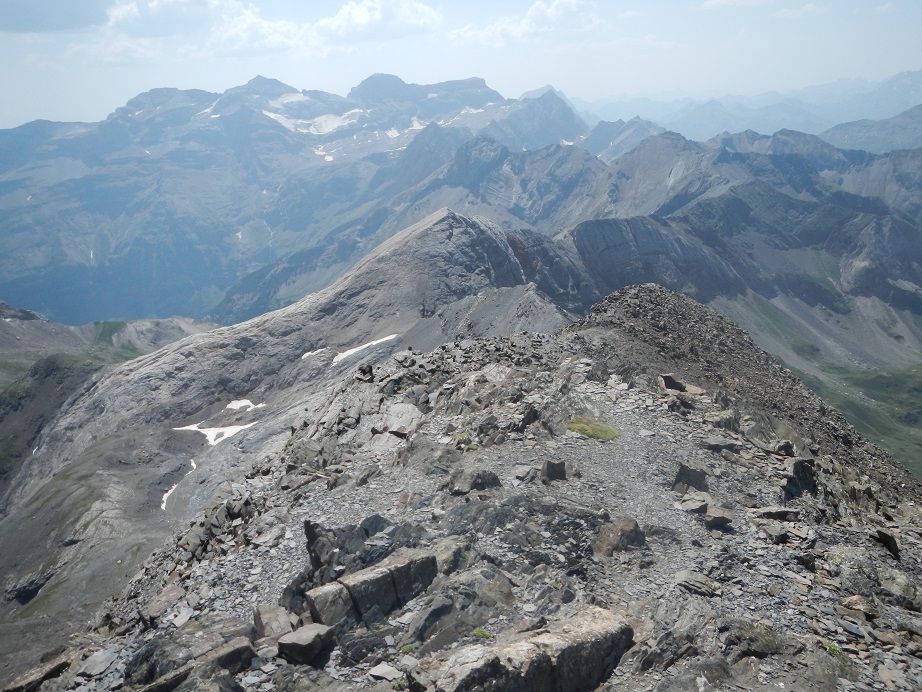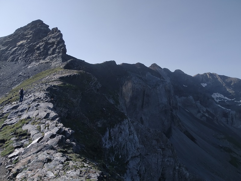 La cresta es ancha al principio. Detrás tenemos el pico Gerbats.