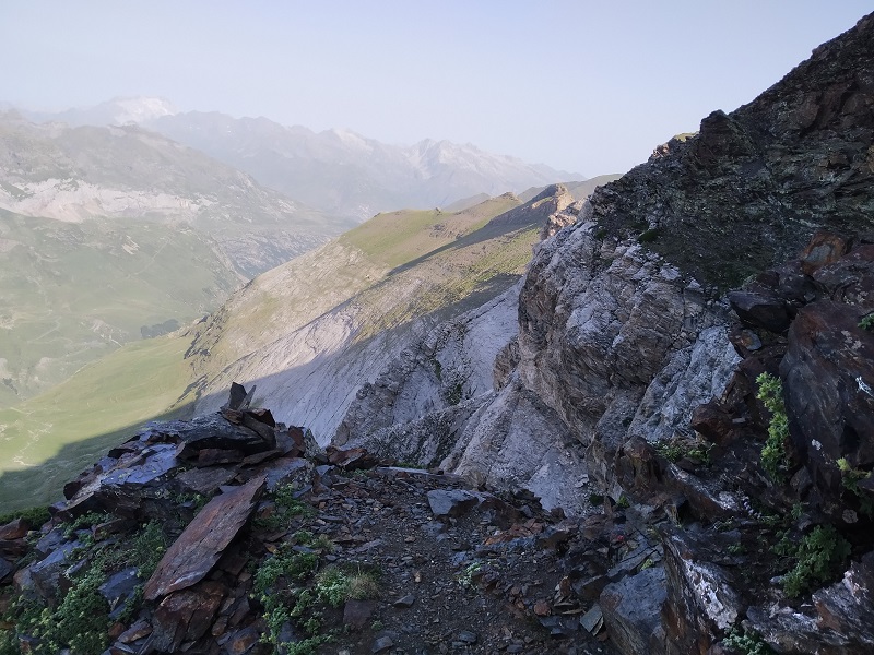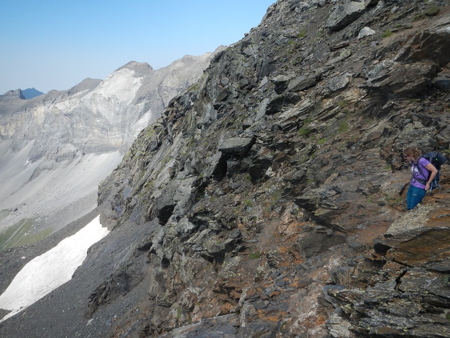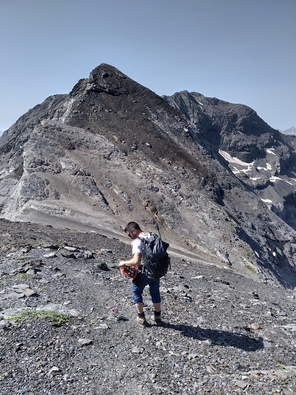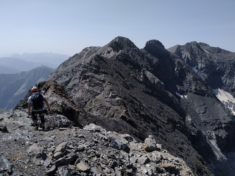 El paso de los Tubos de Gerbats es una travesía expuesta que, evitando el pico Gerbats, nos da acceso a la cresta de la Munia. Sin dificultad técnica, ya que solo tendremos que apoyar las manos, sus 400 de caída hacia el circo y el terreno descompuesto harán que este pasaje no deje indiferente a nadie. A mí, personalmente, me impresionó bastante.