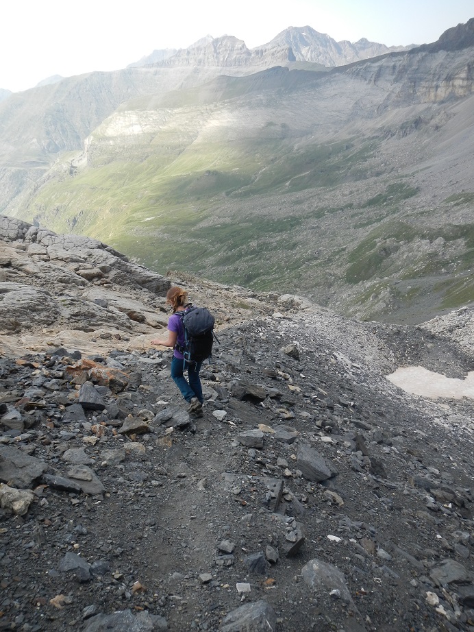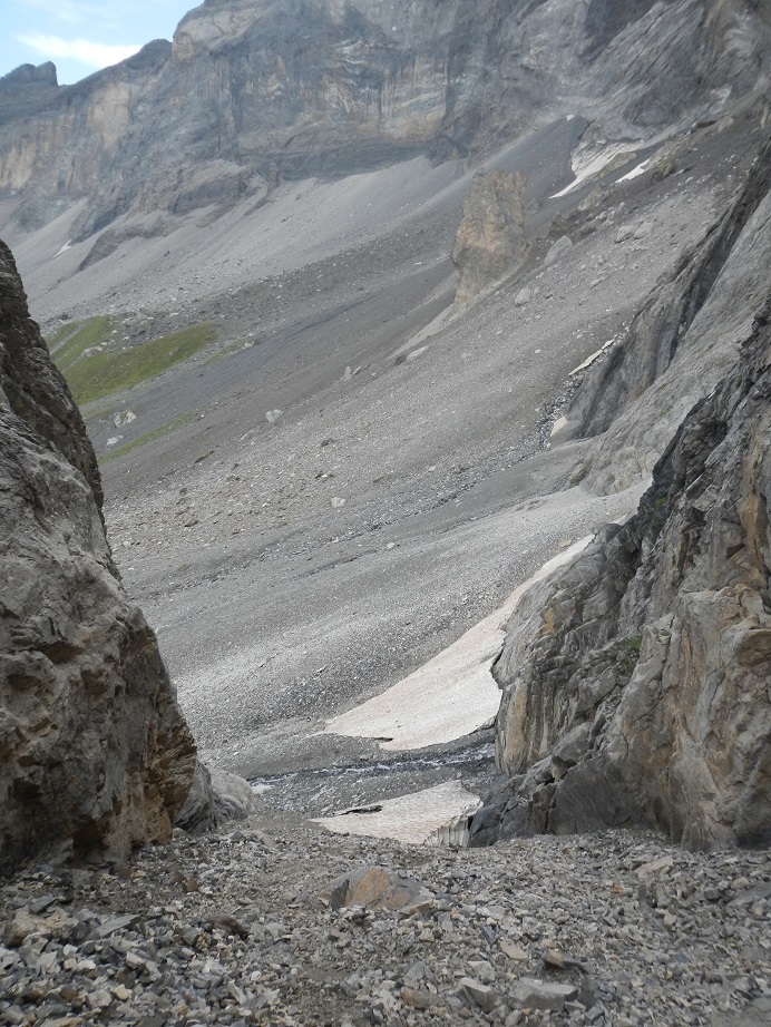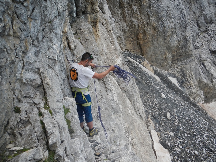 Por terreno más o menos cómodo llegamos a Le Passet, una placa inclinada con una cuerda fija. Nosotros montamos nuestra cuerda y realizamos un rápel.