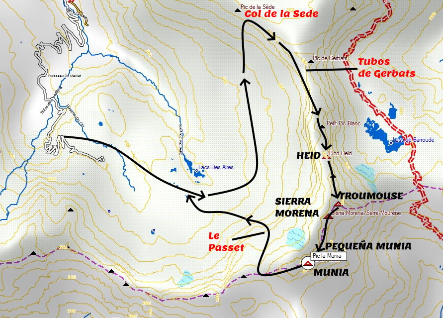 - Si realizamos la ruta desde la parte española, llegaremos al pico Heid y habrá que retornar al collado de la Munia recorriendo la cresta dos veces.