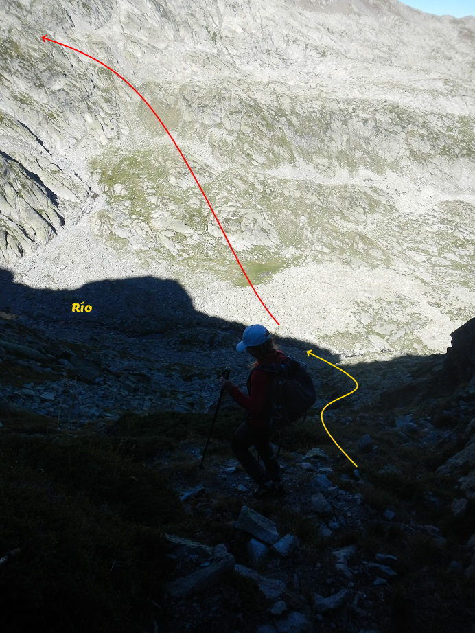 Desde el collado bajamos en dirección a un visible río.