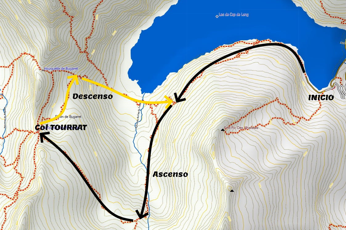 Debemos ir en busca del Lac Tourrat hasta empalmar con la ruta de ascenso.