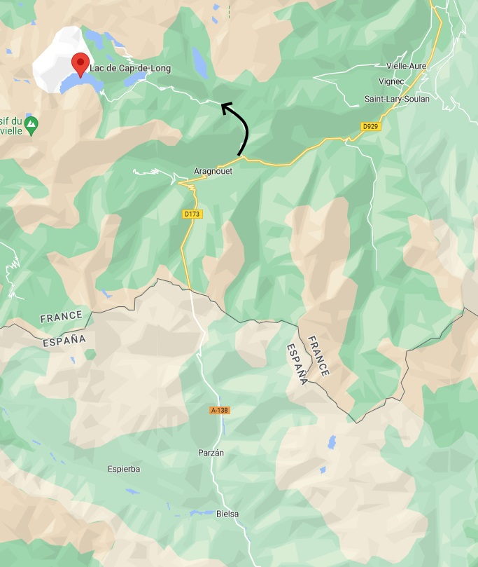 Desde España, cruzamos el túnel de Bielsa para entrar en Francia y seguimos la carretera D173 hasta llegar y cruzar el municipio de Aragnouet.