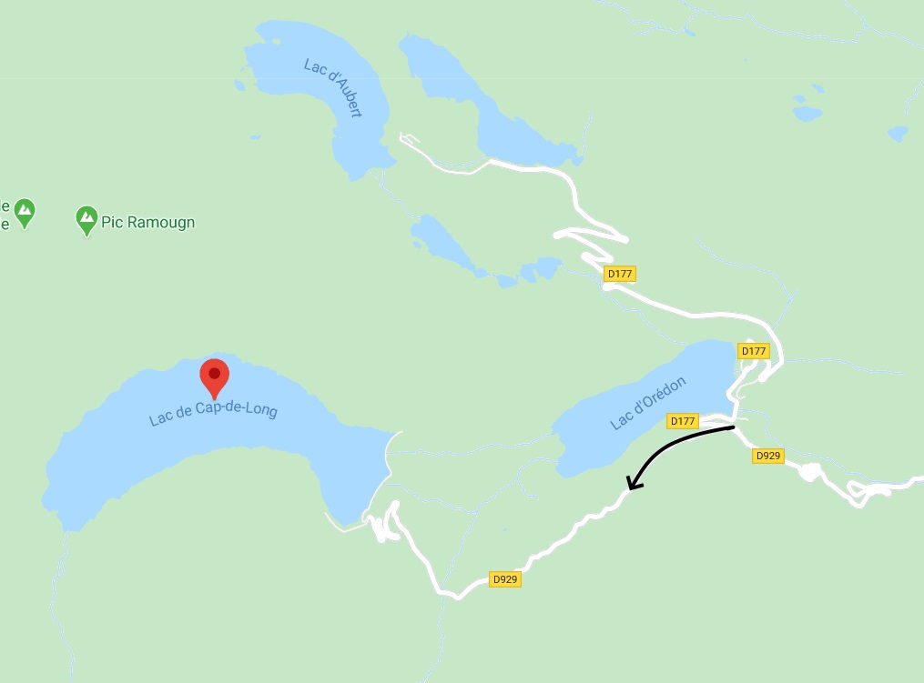 Ascendemos la carretera asfaltada hasta encontrar un desvío a la derecha que nos llevaría al Lac d’Orédon, nosotros continuamos rectos hasta el final de la carretera, donde se encuentra el embalse de Cap de Long y podemos estacionar el vehículo.