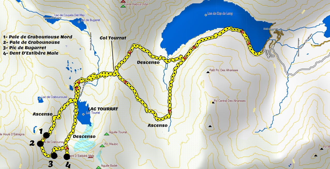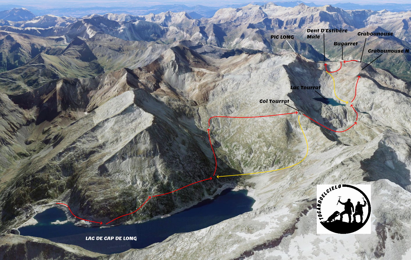 Al sur del Néouvielle y bajo la imponente cara oeste del Pic Long se ubican 4 cumbres de más de tres mil metros que se pueden enlazar en el día con relativa facilidad: