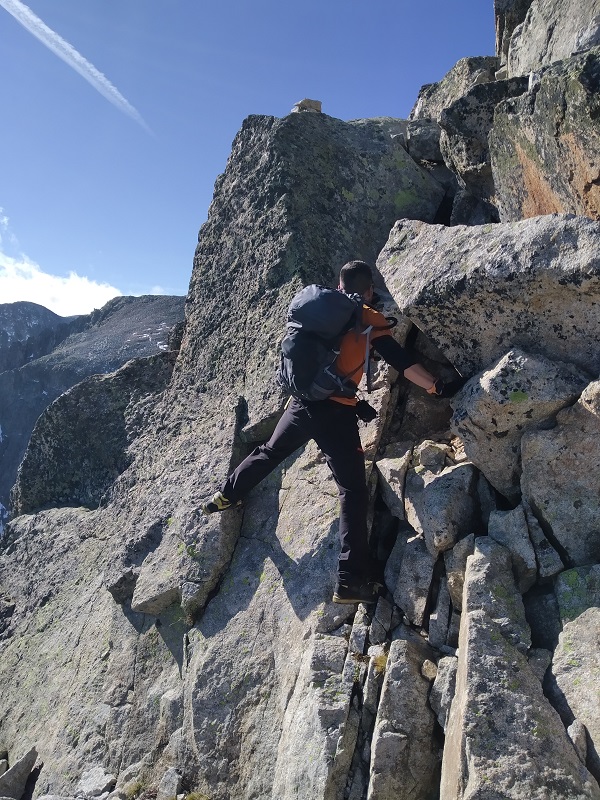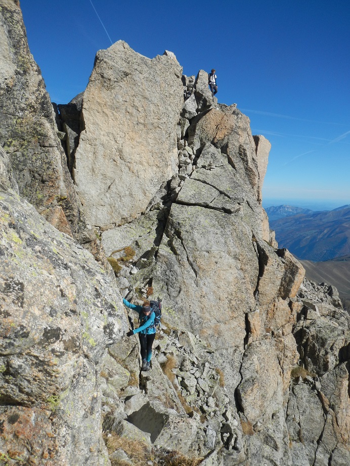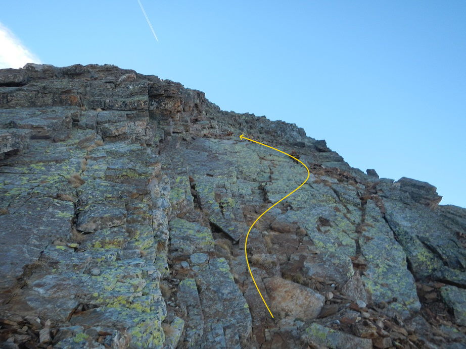 Ahora viene un tramo de orientarse, ya que deberemos superar algunos escalones para llegar a la arista cimera.